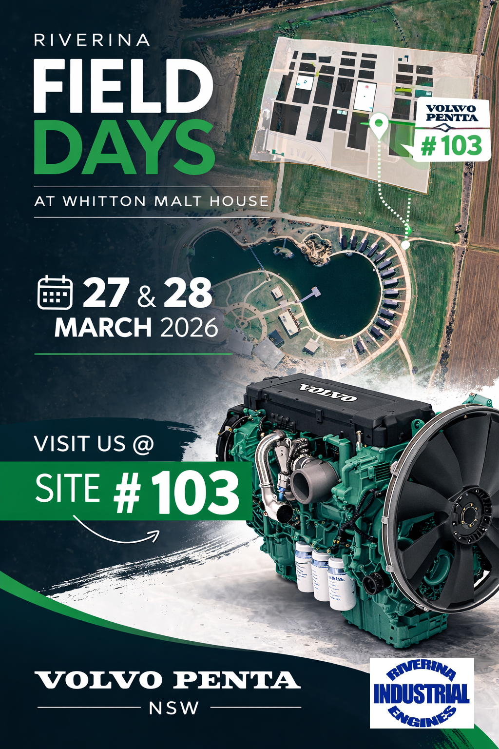 Make sure you drop by and visit Griffiths only Authorised Volvo Penta Dealer, Riverina Industrial Engines, Site 103.
